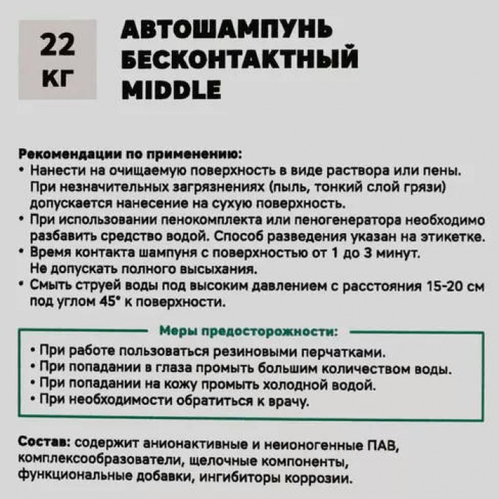 Автошампунь бесконтактный MIDDLE GARWIN PRO | 22 кг | 1 шт. |