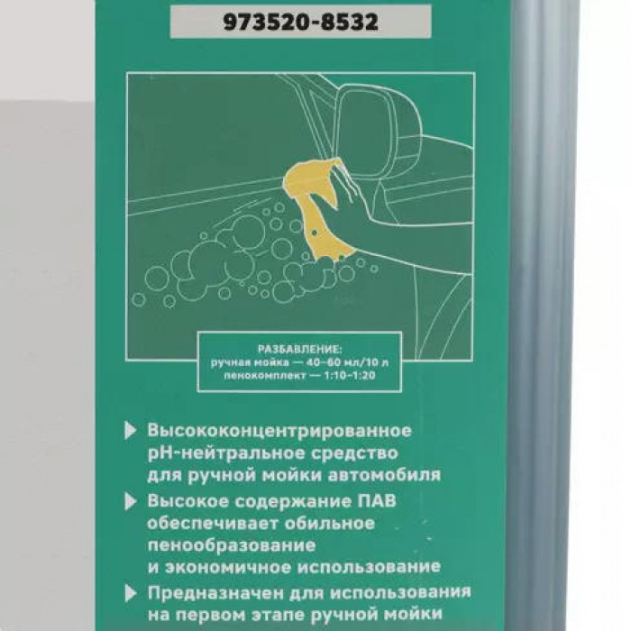 Ручной автошампунь для тщательной мойки. Эффективно удаляет грязь. Удобен в использовании. Подходит для ручной мойки.