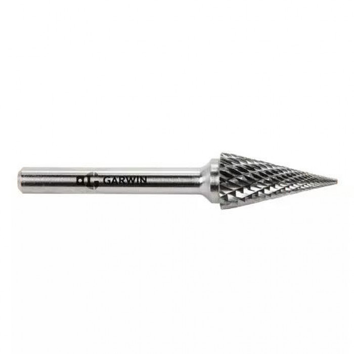 GARWIN INDUSTRIAL: Твердосплавная борфреза M - коническая с заостренным концом с dc - универсальная насечкой, Ø 3 мм, хвостовик Ø 3 мм, длина рабочей части 8,9 мм, общая длина 38 мм. Профессиональный инструмент для прецизионной обработки.