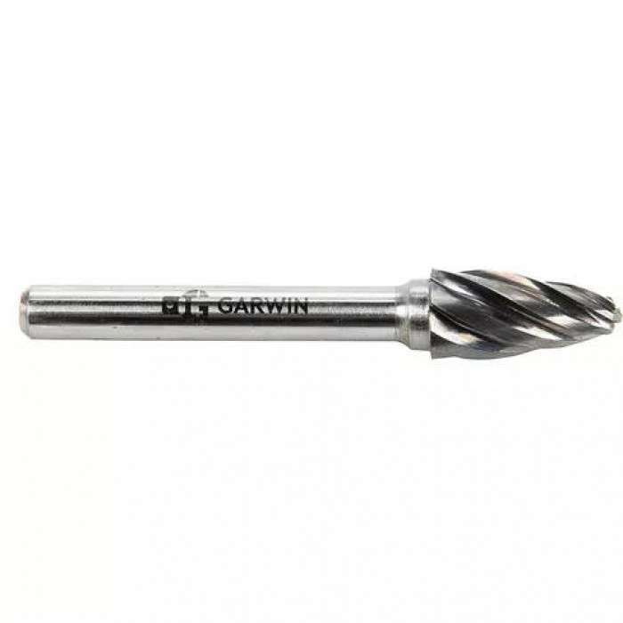 GARWIN INDUSTRIAL: Твердосплавная борфреза F - параболическая с al - для алюминиевых сплавов и пластиков насечкой, Ø 3 мм, хвостовик Ø 3 мм, длина рабочей части 6 мм, общая длина 38 мм. Профессиональный инструмент для прецизионной обработки.