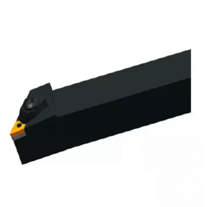 Резец токарный для наружного точения по металлу со сменными пластинами. Державка токарная с креплением типа M (прижим клин-прихватом сверху). Для продольного точения и подрезки торца.