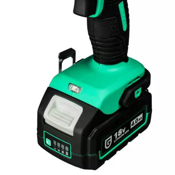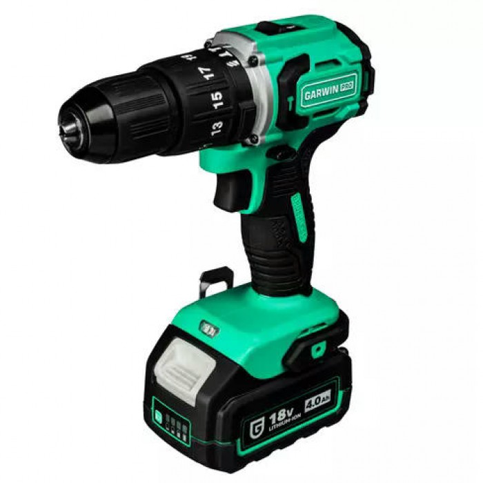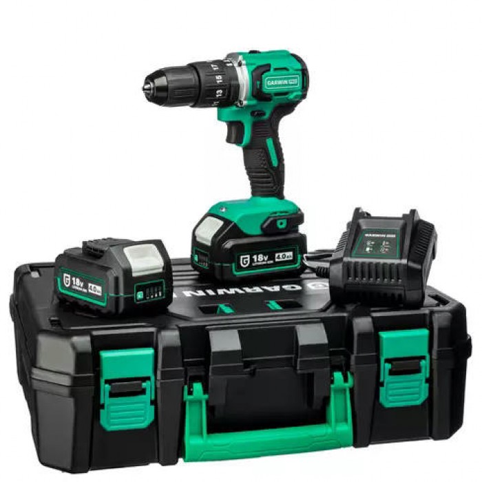 Аккумуляторный шуруповёрт от GARWIN PRO поставляется в пластиковом кейсе в комплекте с двумя литий-ионными аккумуляторами ёмкостью 4 Ач и зарядным устройством. Вес инструмента без аккумулятора - 1,27 кг.