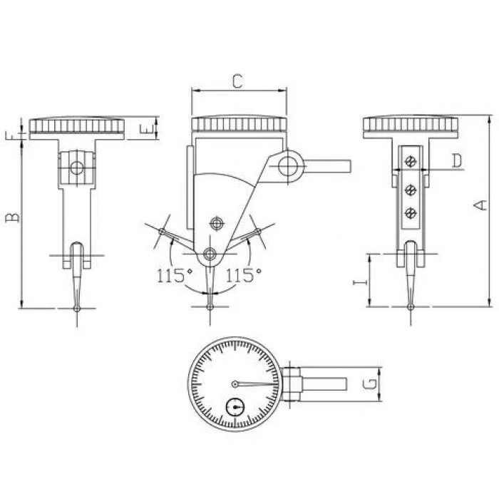 Данный тип индикатора оснащен шкалой, размещенной перпендикулярно оси измерительного рычага в среднем положении.