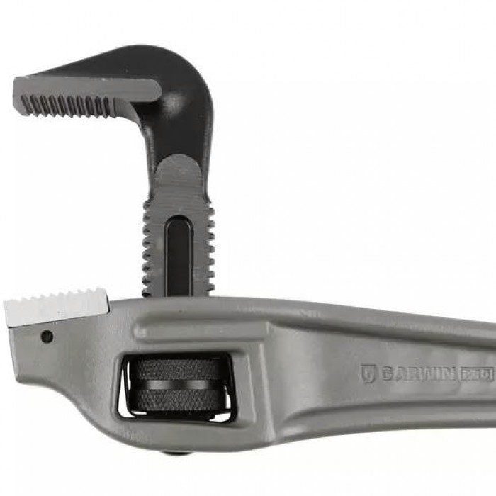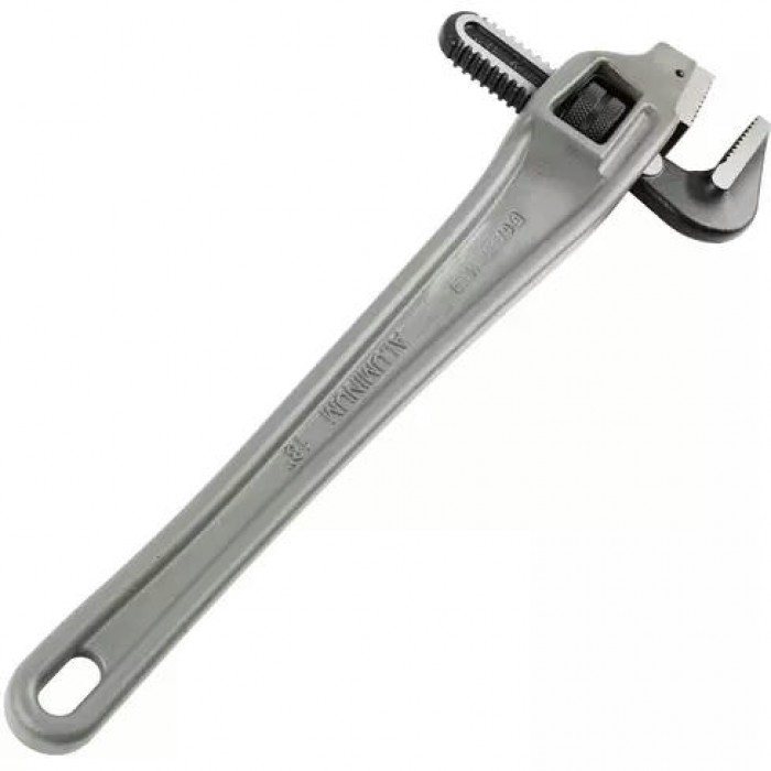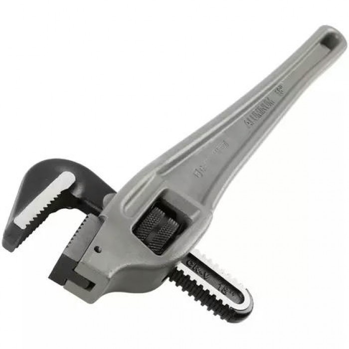 Ключ трубный коленчатый с рукояткой из алюминиевого сплава легче чугунного аналога почти вдвое.