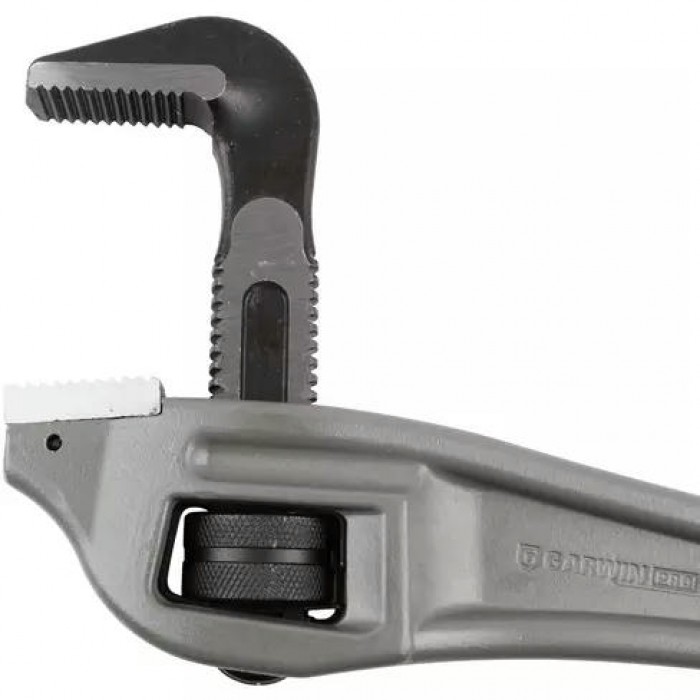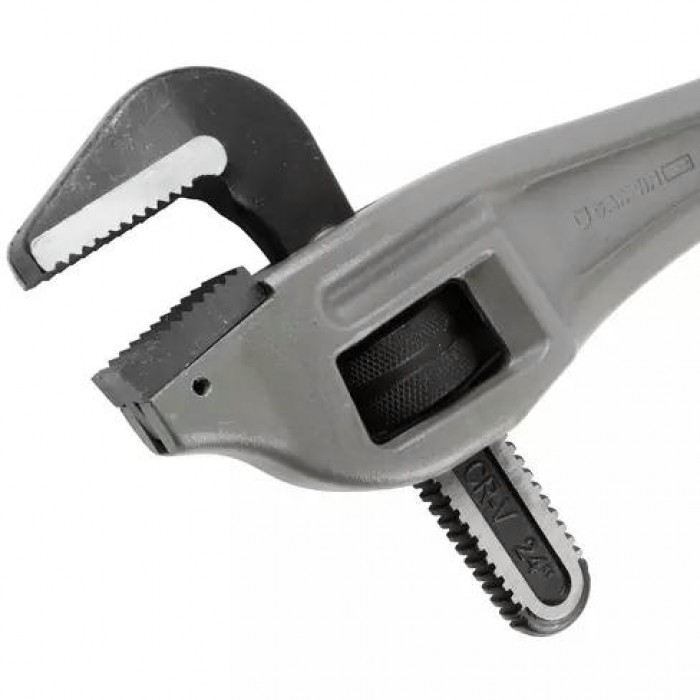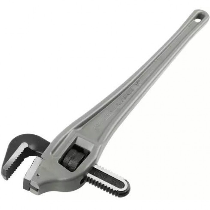 Ключ трубный коленчатый с рукояткой из алюминиевого сплава легче чугунного аналога почти вдвое.