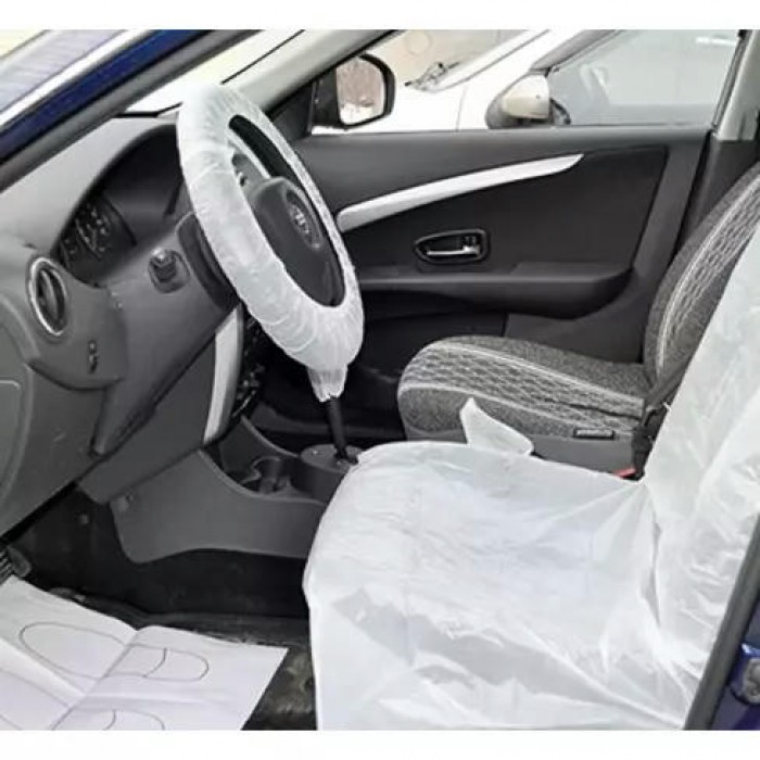 Комплект 5 в 1 (чехол на руль, накидка на сиденье, коврик под ноги, чехол на ручку КПП и ручник) предназначен для маскировки/укрывания салона автомобиля при ремонтных работах.