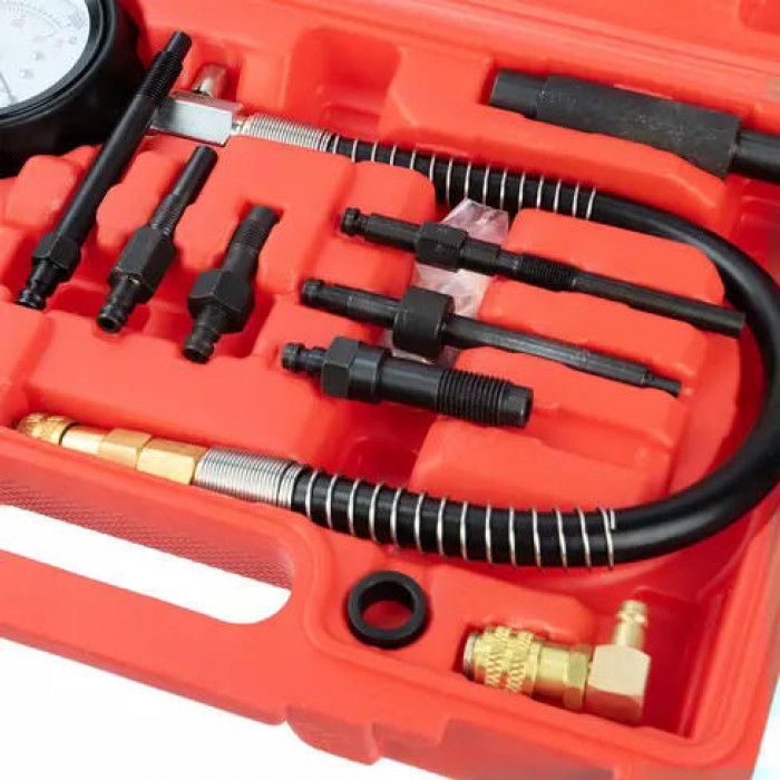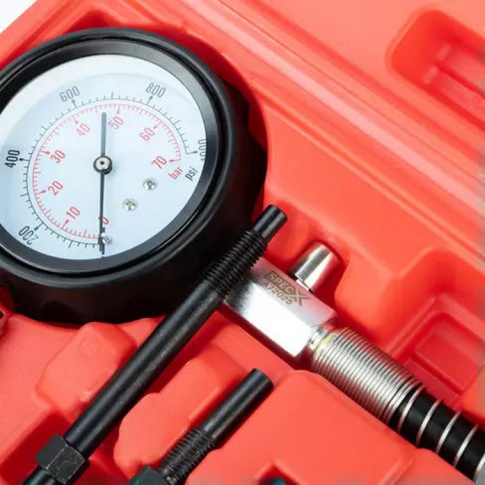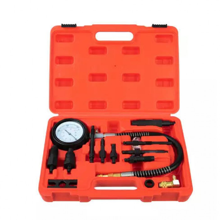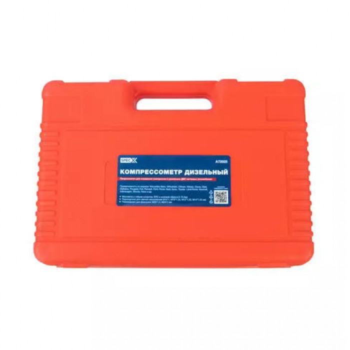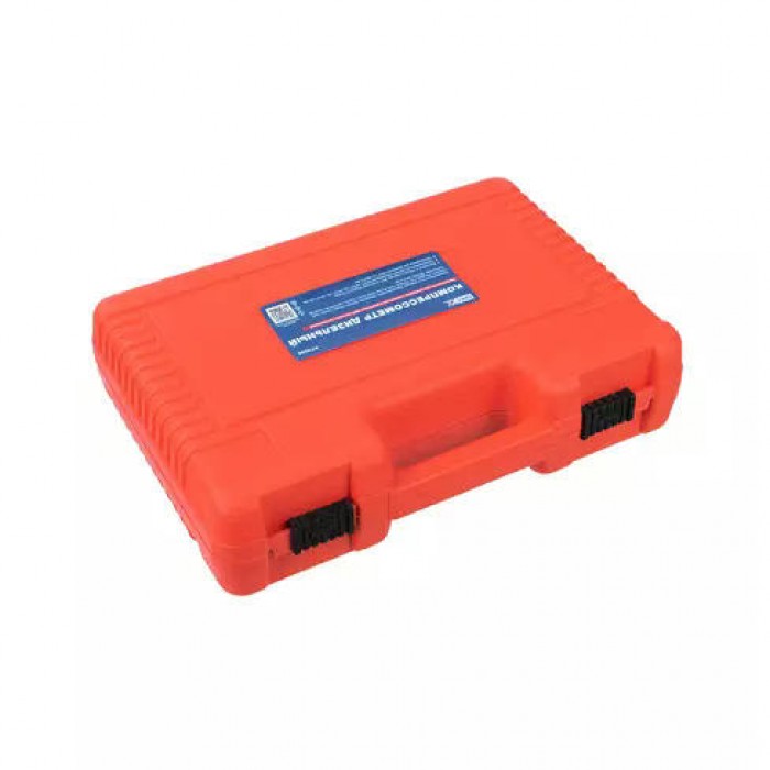 Предназначен для измерения компрессии в дизельных ДВС с непосредственным впрыском и с предкамерой, установленных на легковых и легких коммерческих автомобилях.Применяемость по маркам: Mercedes-Benz, Mitsubishi, Citroen, Nissan, Dacia, Opel, Diahatsu, Peugeot, Fiat, Renault, Ford, Rover, Seat, Isuzu, Toyota, Land Rover, Vauxhall, Volkswagen, Mazda, Volvo и др.- Манометр с гибким шлангом, БРС и кнопкой сброса 0-70 бар- Переходники для свечей накаливания М10*1, М10*1.25, М12*1.25, М14*1.25 мм- Переходники для форсунок М20*1.5, М24*2 мм