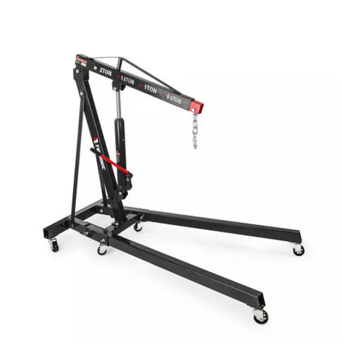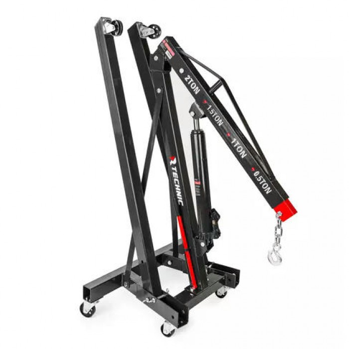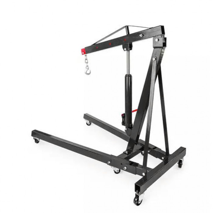 Складной гаражный кран применяется для монтажа и демонтажа силовых агрегатов автомобиля, таких как двигатель, коробка передач и другое навесное оборудование. Кран оснащен гидравлическим подъёмным механизмом и имеет удобную складную конструкцию, занимающую мало пространства. Это делает его незаменимым для использования в условиях небольшого автосервиса или гаража. Управление — гидравлический цилиндр с ручным приводом. На основание крана расположены поворотные колёса, что позволяет с лёгкостью перемещать демонтированные узлы и агрегаты к месту ремонта.