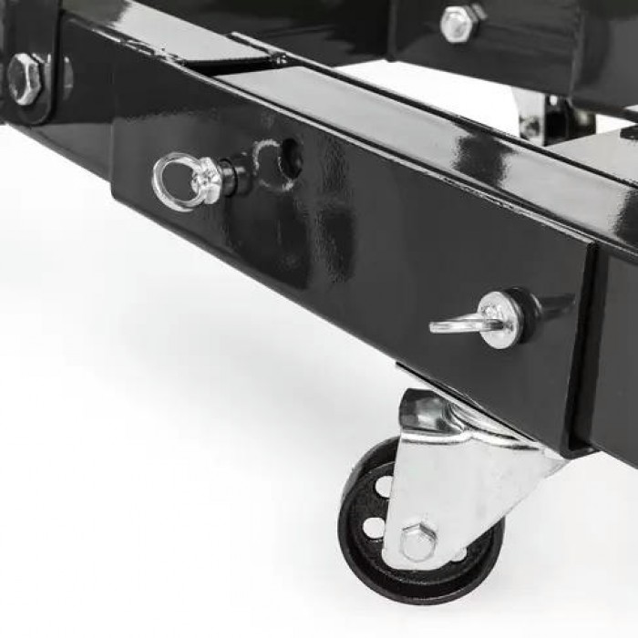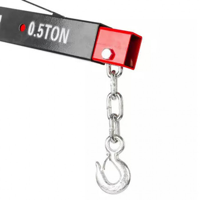 Благодаря карабину крюка исключается срыв груза и гарантируется безопасная работа. Оператор прикладывает минимум усилий во время работы, поскольку подъем стрелы осуществляется при помощи гидравлического цилиндра. Установка легко перемещается по рабочей площадке за счет шести поворотных колес.