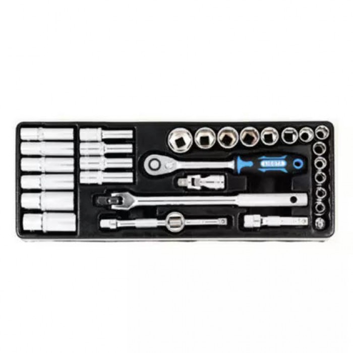 Набор торцевых головок с аксессуарами Licota ACK-384028 из хром-ванадиевой стали предназначен для ручного монтажа/демонтажа резьбового крепежа.