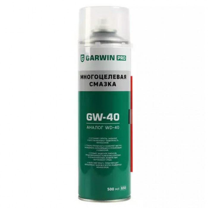 Многоцелевая смазка GARWIN PRO GW-40 973520-3650/12 — это профессиональная универсальная смазка в аэрозольных баллонах 650 мл (упаковка 12 шт). Используется как многофункциональная смазка для механизмов и защиты деталей от коррозии и заклинивания.