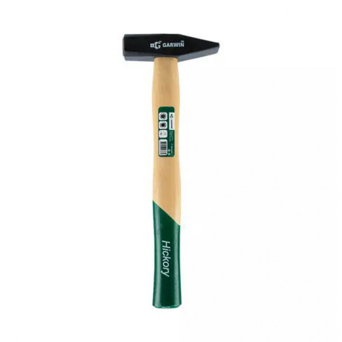 Молоток слесарный с рукояткой из дерева гикори 500 г GARWIN GHW-00500 предназначен для выполнения слесарных работ. Он имеет кованный стальной боек с ровной и сужающейся поверхностью, которая покрыта лаком. Применяется для гибки металла, вбивания гвоздей, осадки шпонок. Острой стороной можно забивать маленькие гвозди. Молоток оснащен удобной лакированной рукояткой из твердых пород дерева.