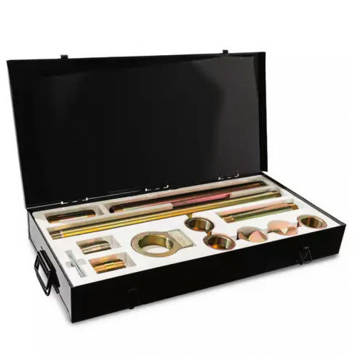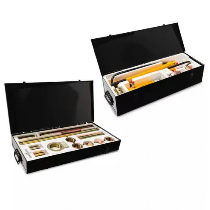 Комплект из 18 предметов поставляется в двух прочных металлических кейсах, обеспечивающих удобство хранения и транспортировки. Растяжка идеально подходит для выравнивания деталей и исправления деформаций кузова в автосервисах и ремонтных мастерских.