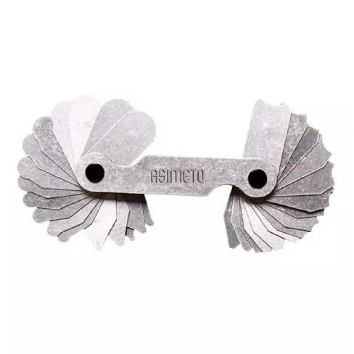 Это измерительный инструмент, предназначенный для определения радиуса выпуклых или вогнутых поверхностей. Шаблоны выпускаются в виде сдвоенной обоймы стальных пластин, имеющих эталонное значение радиуса кривизны. Измерение производится методом подбора соответствующего щупа путем прикладывания к измеряемой поверхности. Параметры шаблонов: 7.5 - 15 мм с шагом 0.5 мм