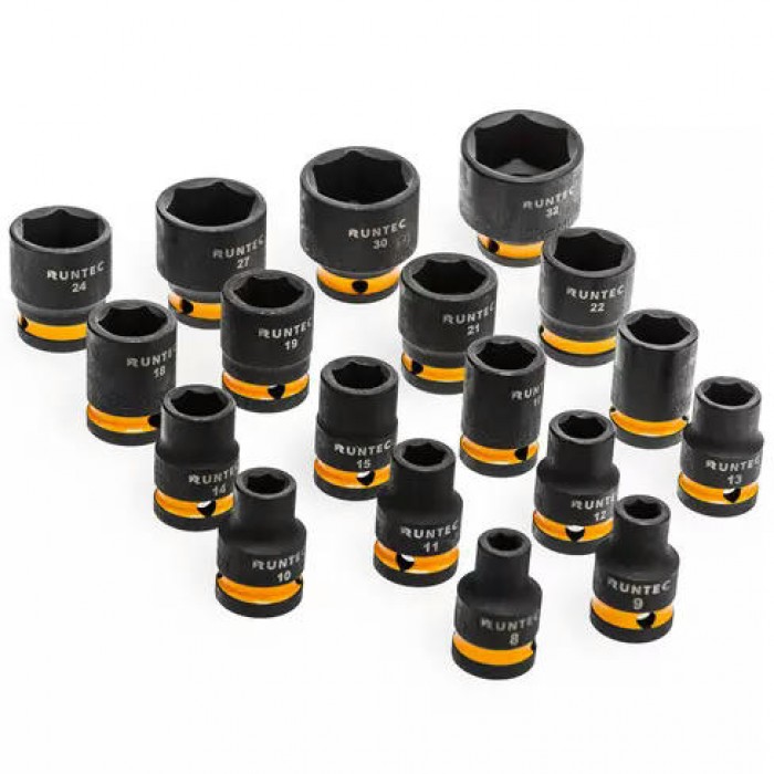 Головки торцевые ударные 1/2" | 8, 9, 10, 11, 12, 13, 14, 15, 16, 17, 18, 19, 21, 22, 24, 27, 30, 32 мм | 18 шт. |