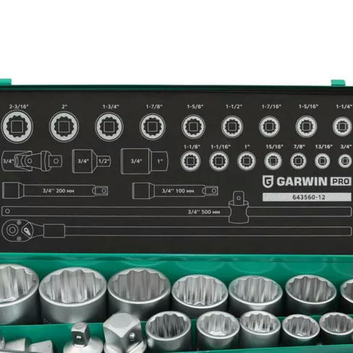 Головки торцевые 12 граней с приводом 3/4”: 3/4", 13/16"; 7/8", 15/16", 1", 1-1/16", 1-1/8", 1-1/4", 1-5/16", 1-7/16", 1-1/2", 1-5/8", 1-7/8'',1-3/4", 2", 2-3/16''мм | 16 шт. | |