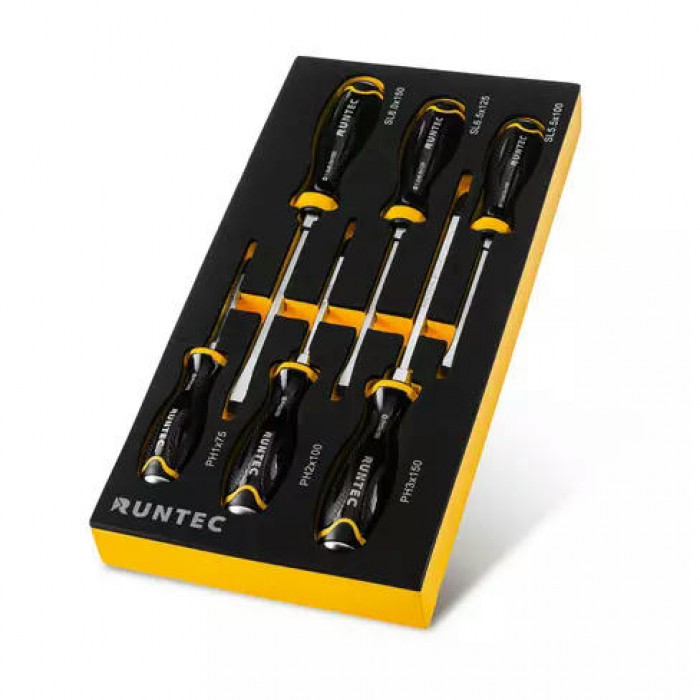 Набор профессиональных отверток с повышенным рабочим ресурсом отличающихся особой прочностью, надежностью и долговечностью. Поставляется в ложементе из полимерного материала EVA 185x375x40 мм.