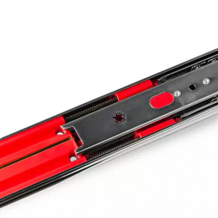 Усиленные направляющие с доводчиками, подходят для тележек серии Industrial. Максимальная нагрузка на ящик на направляющих — 45 кг.