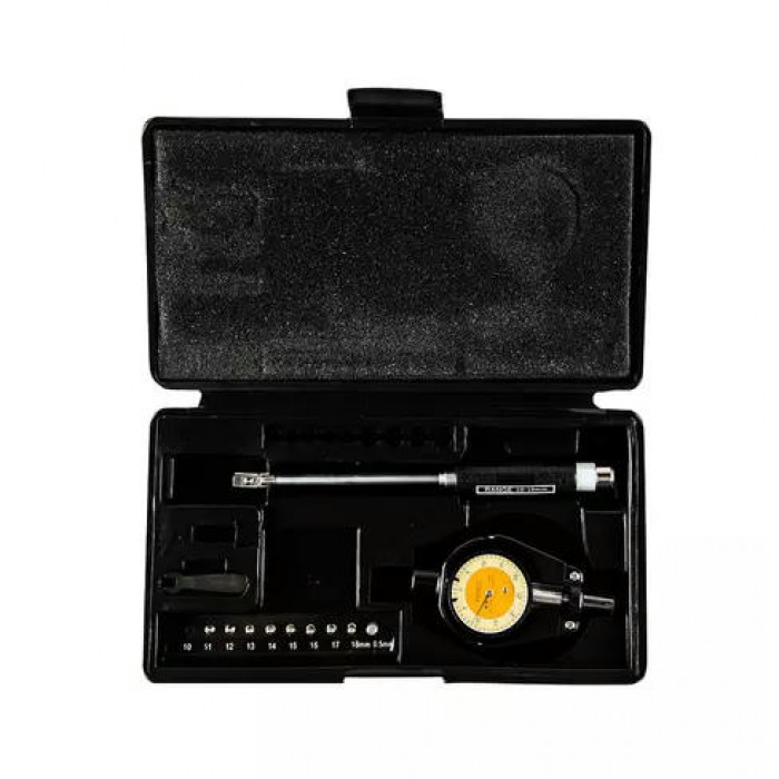 Комплект из 11 предметов в пластиковом футляре позволяет производить замеры в труднодоступных местах. Диапазон измерений 10-18 мм.