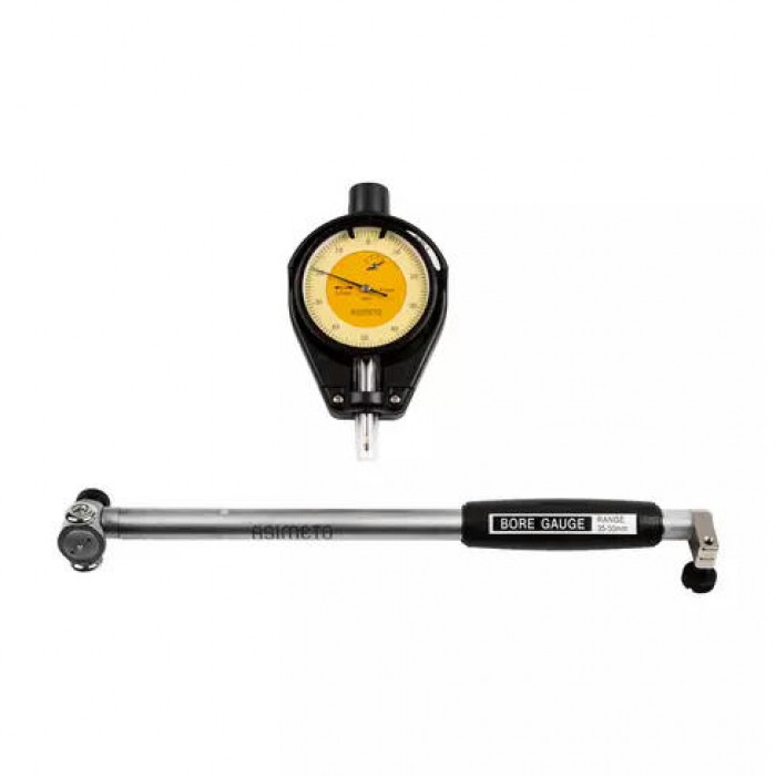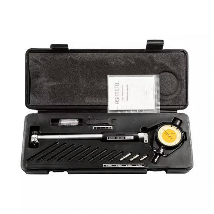 Нутромер индикаторный Asimeto 484-22-0 с комплектом сменных опорных наконечников – инструмент для определения размеров пазов, отверстий и внутренних поверхностей изделий методами абсолютного или относительного измерения.
