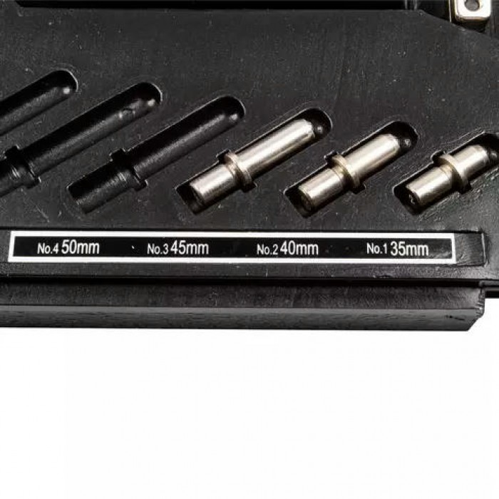 Комплект из 9 предметов в пластиковом футляре позволяет производить замеры в труднодоступных местах. Диапазон измерений 35-50 мм.