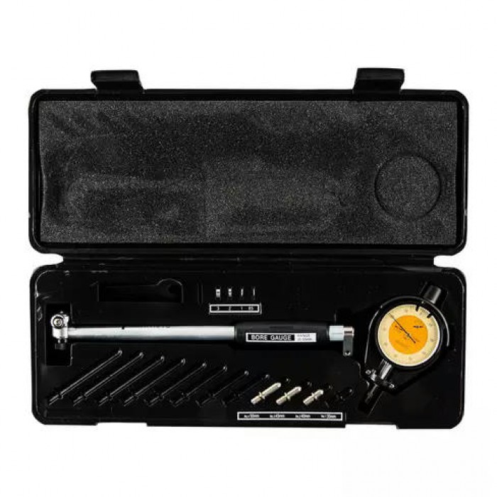 Комплект из 9 предметов в пластиковом футляре позволяет производить замеры в труднодоступных местах. Диапазон измерений 35-50 мм.