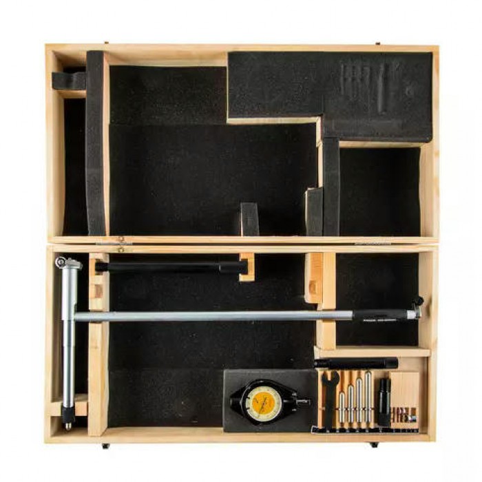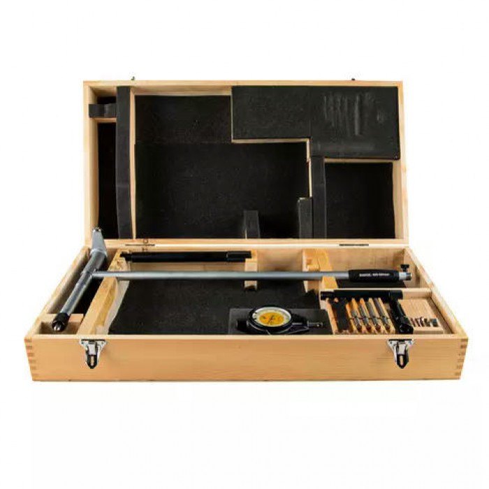Комплект из 13 предметов в деревянном футляре позволяет производить замеры в труднодоступных местах. Диапазон измерений 400-600 мм.