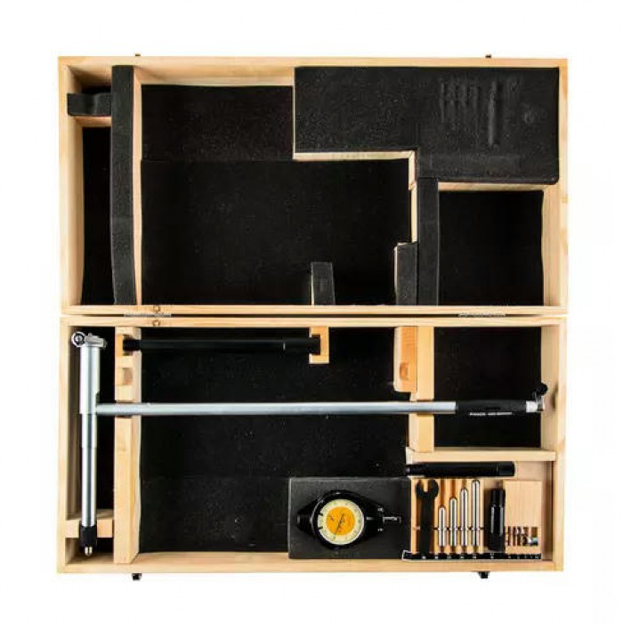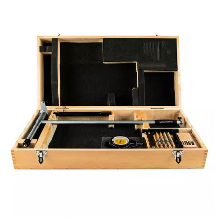 Комплект из 13 предметов в деревянном футляре позволяет производить замеры в труднодоступных местах. Диапазон измерений 400-600 мм.
