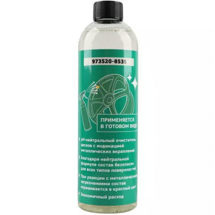 Индикаторный очиститель для дисков и кузова. Эффективно удаляет загрязнения. Показывает обработанные участки. Удобен для контроля чистоты.