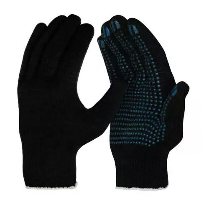 Трикотажные перчатки с ПВХ ПРОМПЕРЧАТКИ 6 нитей, 10 класс, черные, защищают руки от царапин, порезов, мозолей, различных загрязнений, без потери чувствительности.