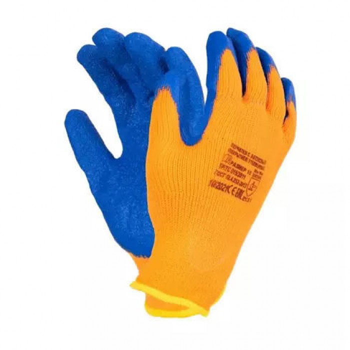 Перчатки трикотажные с рифлёным латексным покрытием утеплённые ICE оранжевые | 1 шт. |