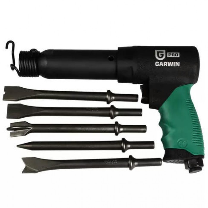 Пневматический молоток с комплектом из 5 зубил – профессиональный инструмент для выполнения тяжелых ударных работ.