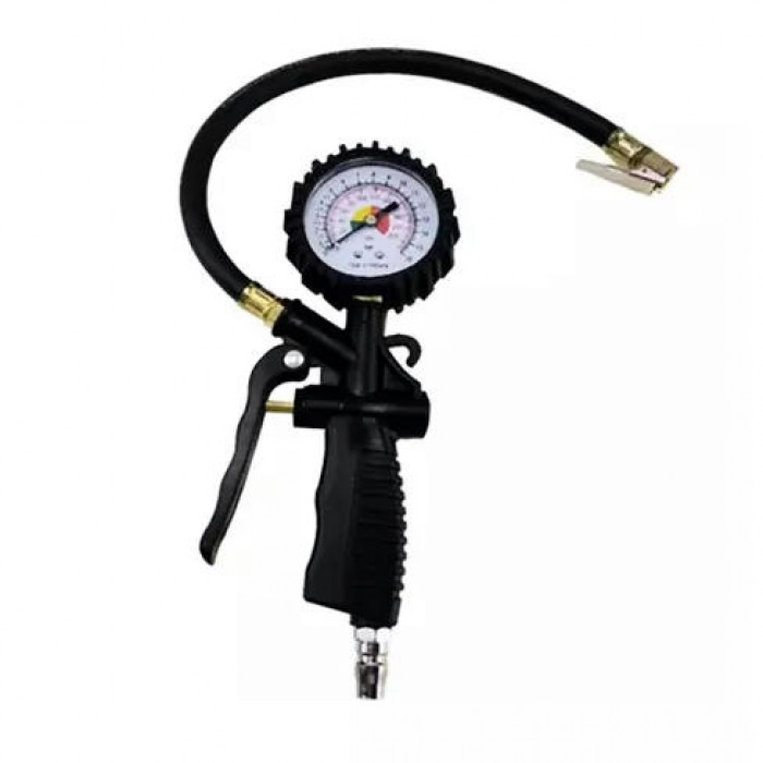 Пистолет для накачки шин ТЕХРИМ 806008-04 с механическим манометром для контроля давления. Инструмент предназначен для эксплуатации в мастерской, оборудованной компрессором или пневмолинией. Применяется в гаражных мастерских, автосервисах, на станциях ТО и шиномонтажах для точной подкачки шин, проверки давления колес и стравливания чрезмерного давления.
