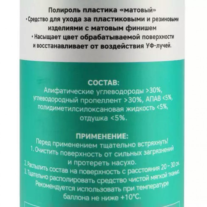 Полироль-реставратор пластика матовый GARWIN PRO 400 мл служит для ухода за пластиковыми и резиновыми изделиями с матовым финишем. Насыщает цвет обрабатываемой поверхности и защищает от воздействия уф-лучей.