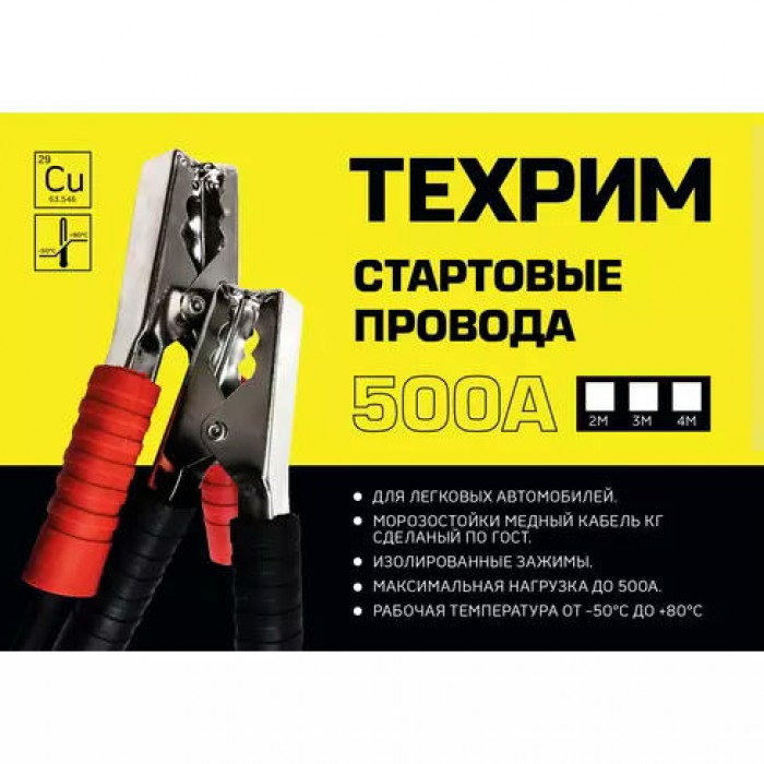 Провода стартовые медные 500A длиной 3 метра предназначены для обеспечения быстрого и безопасного запуска двигателя автомобиля. Они также известны как “провода прикуривания”, так как могут использоваться для подачи питания от одного аккумулятора к другому. Такие пусковые провода незаменимы для любого автомобилиста и профессиональных механиков, особенно в холодное время года или при разряженном аккумуляторе.