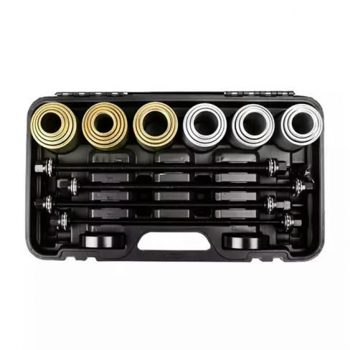 Использование набора позволяет избежать повреждения новой детали при установке и упрощает процесс монтажа. Прочность оправок дает возможность запрессовки деталей с помощью гидравлического пресса.