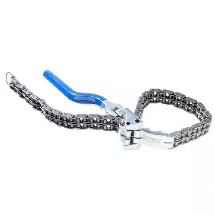 Регулируемая длина цепи обеспечивает крепкий обхват фильтра в процессе демонтажных работ. Наличие шарнира позволяет вести работы в ограниченном пространстве.