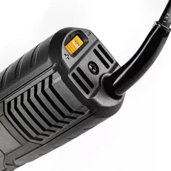 Мы поместили кнопку включения сбоку: такое расположение удобнее верхнего, можно нажать и зафиксировать пусковую клавишу большим пальцем. Две позиции для дополнительной рукоятки — справа или слева. Возможность быстрой регулировки кожуха с помощью специального рычага. Прочная силиконовая оплетка шнура помогает избежать его заломов и повреждений. Низкий уровень шума и вибрации делают высокопроизводительную работу еще и комфортной.