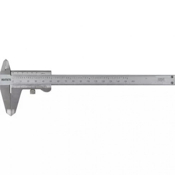 Штангенциркуль нониусный ASIMETO 302-26-2-П серии 302 из нержавеющей стали с губками для внутренних и наружных замеров и плоским глубиномером. Предназначен для измерения линейных размеров малогабаритных деталей.