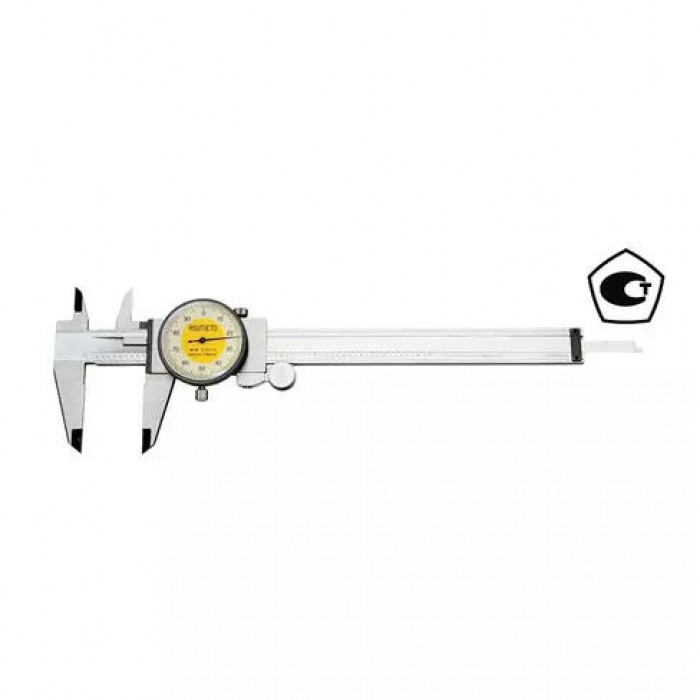 Штангенциркуль циферблатный ASIMETO 303-08-0 из нержавеющей стали предназначен для измерения линейных размеров малогабаритных деталей.