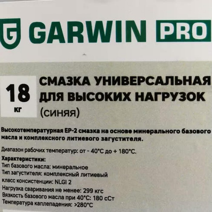 Смазка универсальная для высоких нагрузок GARWIN PRO (синяя) | 18 кг | 1 шт. |