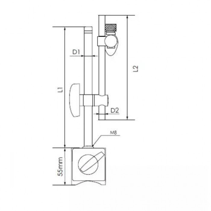 Стойка магнитная 55*176*165 мм ASIMETO предназначена для установки в ней измерительных головок, индикаторов.