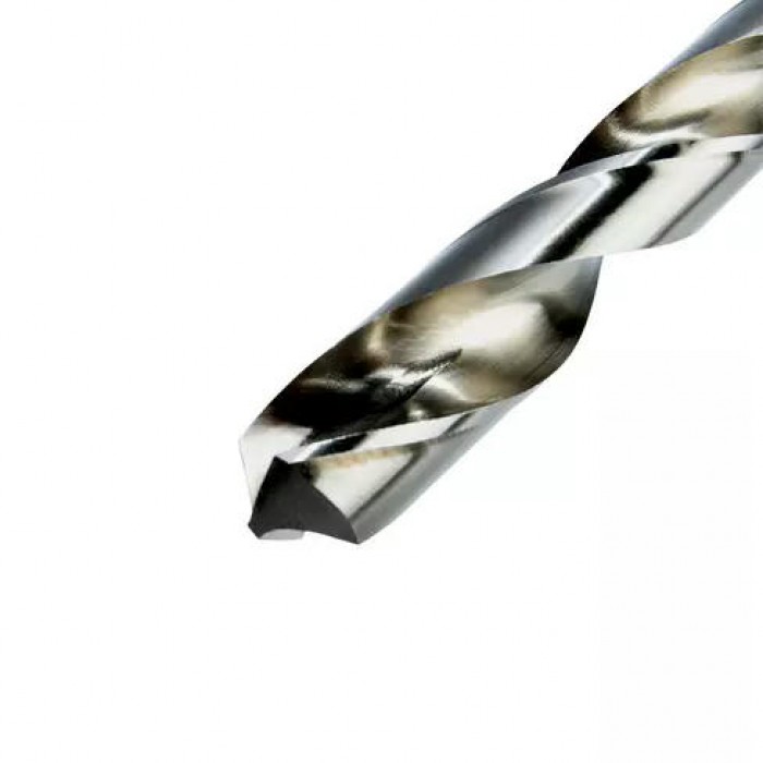 Сверло изготовлено из быстрорежущей стали HSS-G, которая обеспечивает прочность, долговечность и устойчивость к износу. Угол заточки режущей кромки составляет 118°.