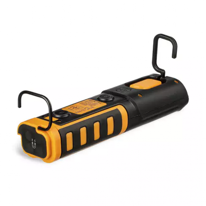 Поворотная конструкция позволяет изменять угол наклона фонаря для максимально удобного освещения. Магнитный держатель обеспечивает крепление фонаря на металлические вертикальные и горизонтальные поверхности. Дополнительная возможность крепления – поворотный крюк для подвешивания. Благодаря небольшому весу и нескользящему корпусу фонарь удобно лежит в руке.
