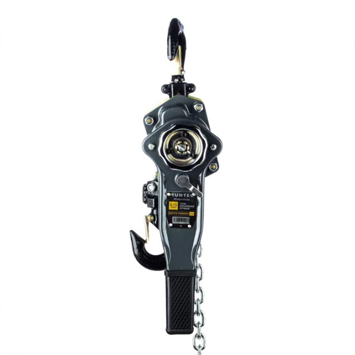 Простота управления талью достигается благодаря приемлемым габаритам, небольшому весу и не высокому тяговому усилию на ручку перемещения цепи, что позволяет использовать модель вручную без дополнительной помощи. Рычажное управление помогает точнее контролировать поднятие и опускание груза. Ребристая поверхность рукоятки предотвращает ее выскальзывание из рук.