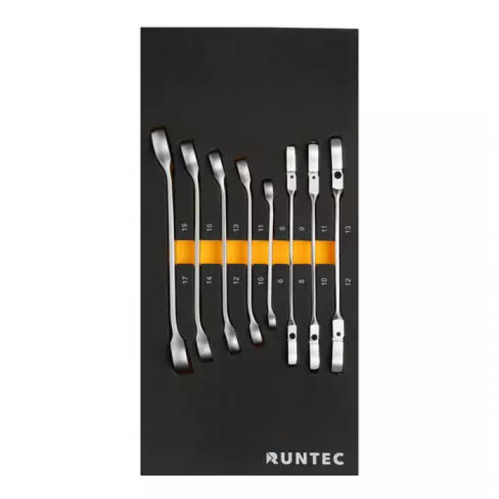 | RT-WFE8 | Набор ключей разрезных стандартных и шарнирных RUNTEC 6-19 мм в ложементе EVA, 8 предметов, 185x375x40 мм | |