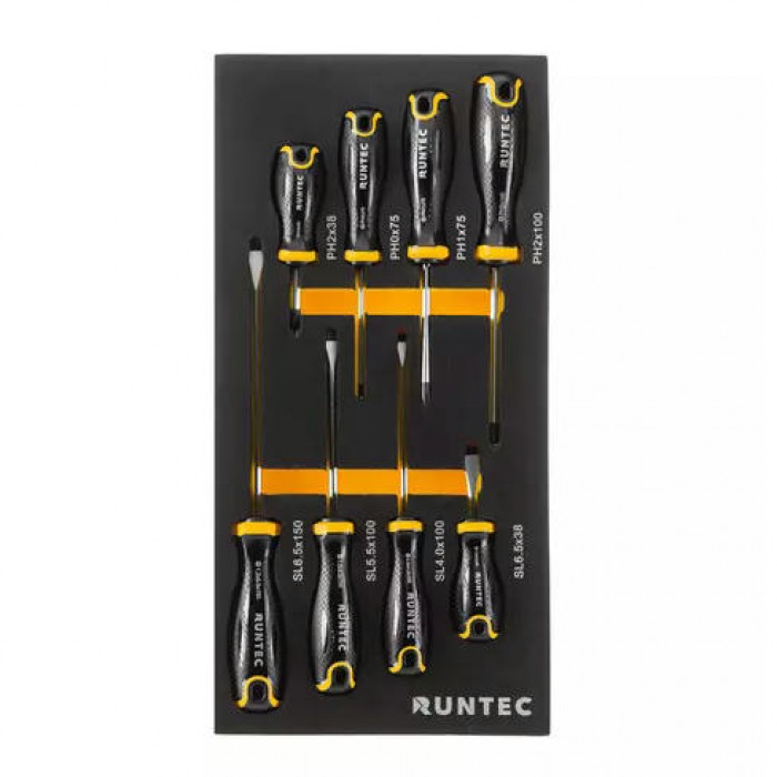 | RT-SD1E8 | Набор отверток RUNTEC S2 в ложементе EVA, 8 предметов, 185x375x40 мм | |