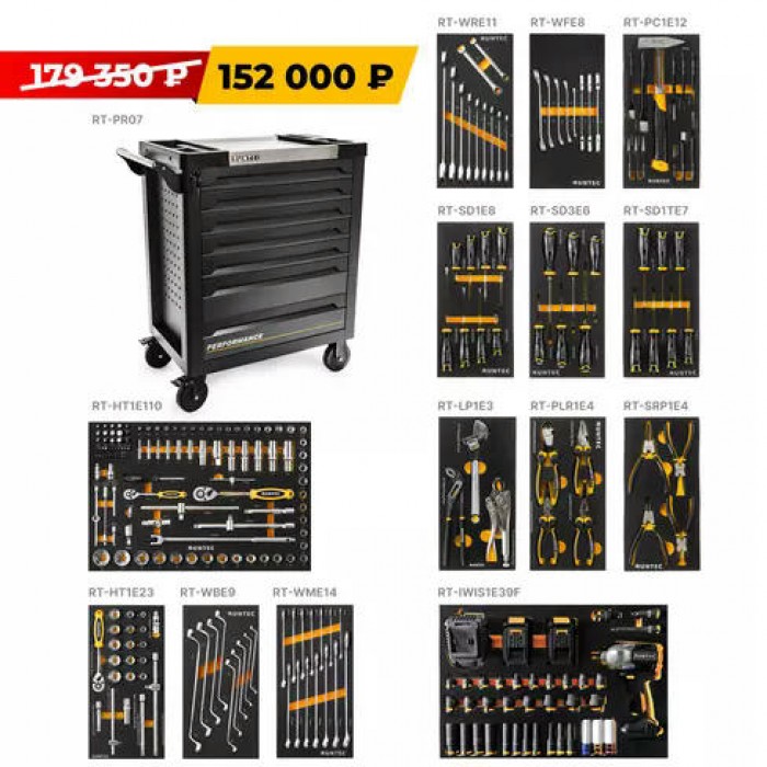 | RT-PC1E12 | Набор ударно-рычажного инструмента RUNTEC в ложементе EVA, 12 предметов, 185x375x40 мм | |