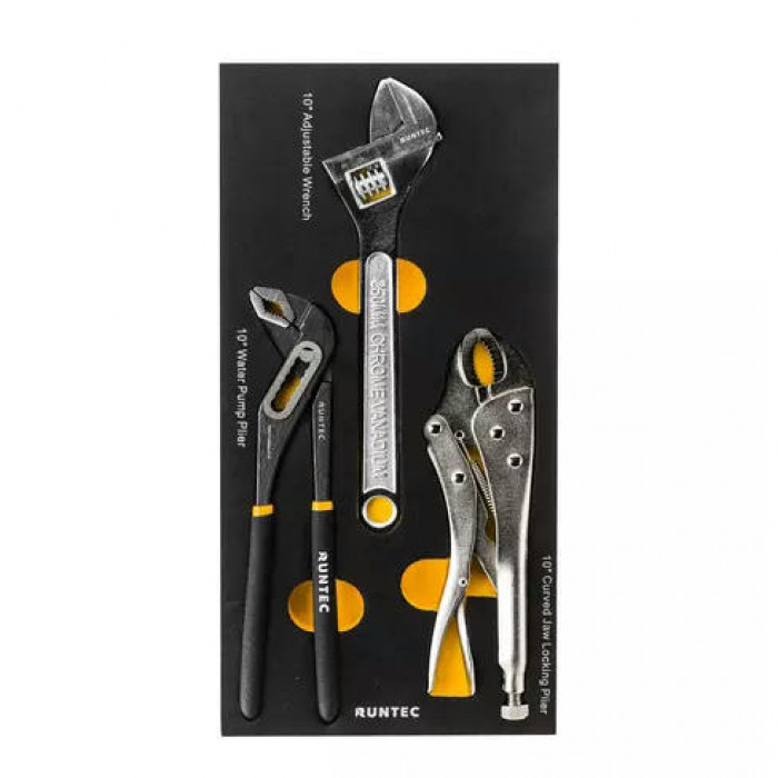 | RT-LP1E3 | Набор ручных инструментов RUNTEC клещи зажимные, клещи переставные, ключ разводной в ложементе EVA, 3 предмета, 185x375x40 мм | |