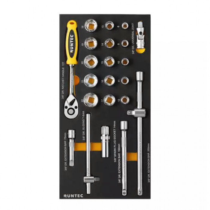 | RT-HT1E23 | Набор торцевых головок с аксессуарами RUNTEC 3/8" в ложементе EVA, 23 предмета, 185x375x40 мм | |